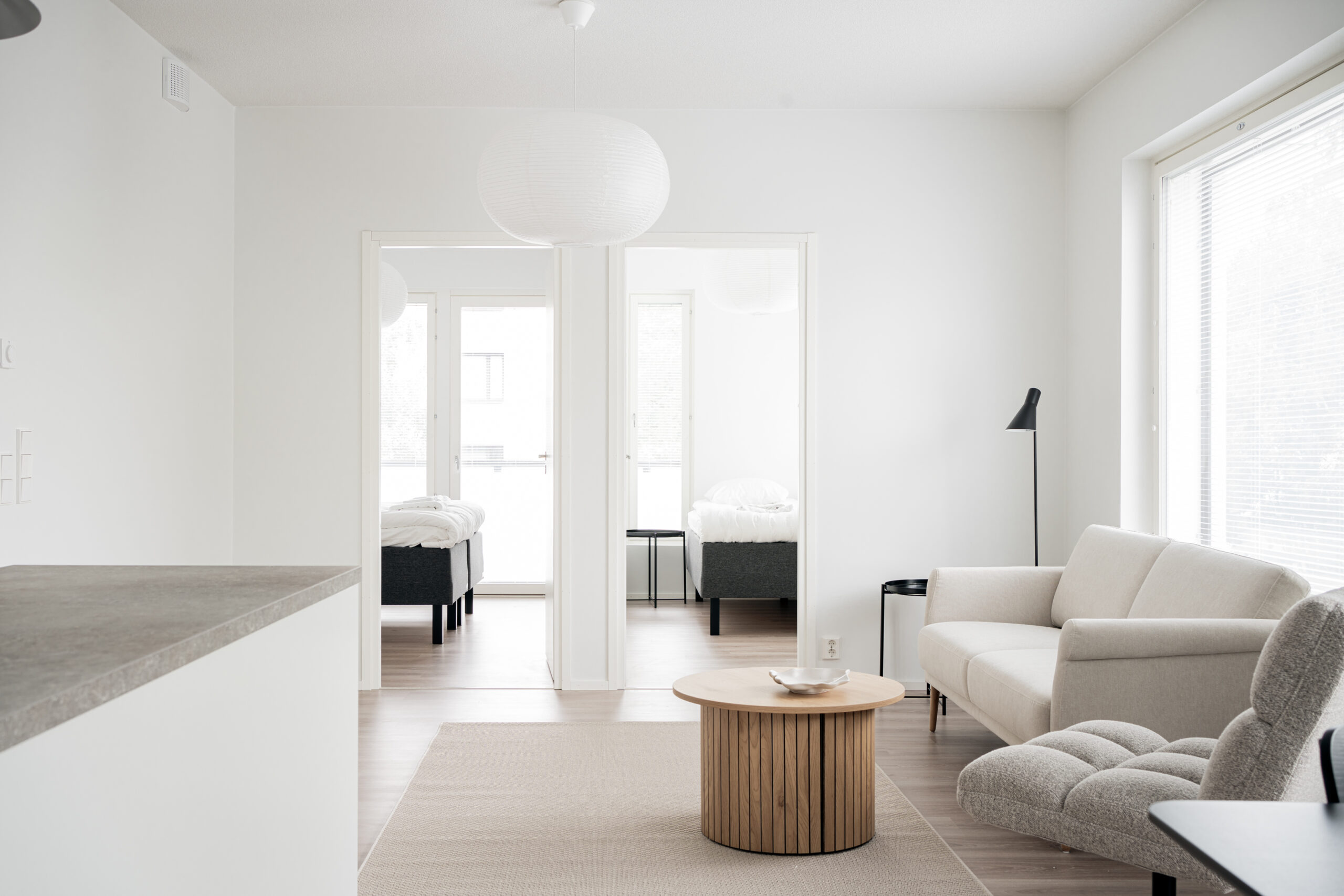 Tämän helpommaksi ei asuminen enää muutu. Muuttaessasi tarvitset vain omat henkilökohtaiset käyttötavarasi. Maksat meille kuukausivuokran ja me huolehdimme kaiken puolestasi. Voit asua 1–6 kk samassa huoneistossa.